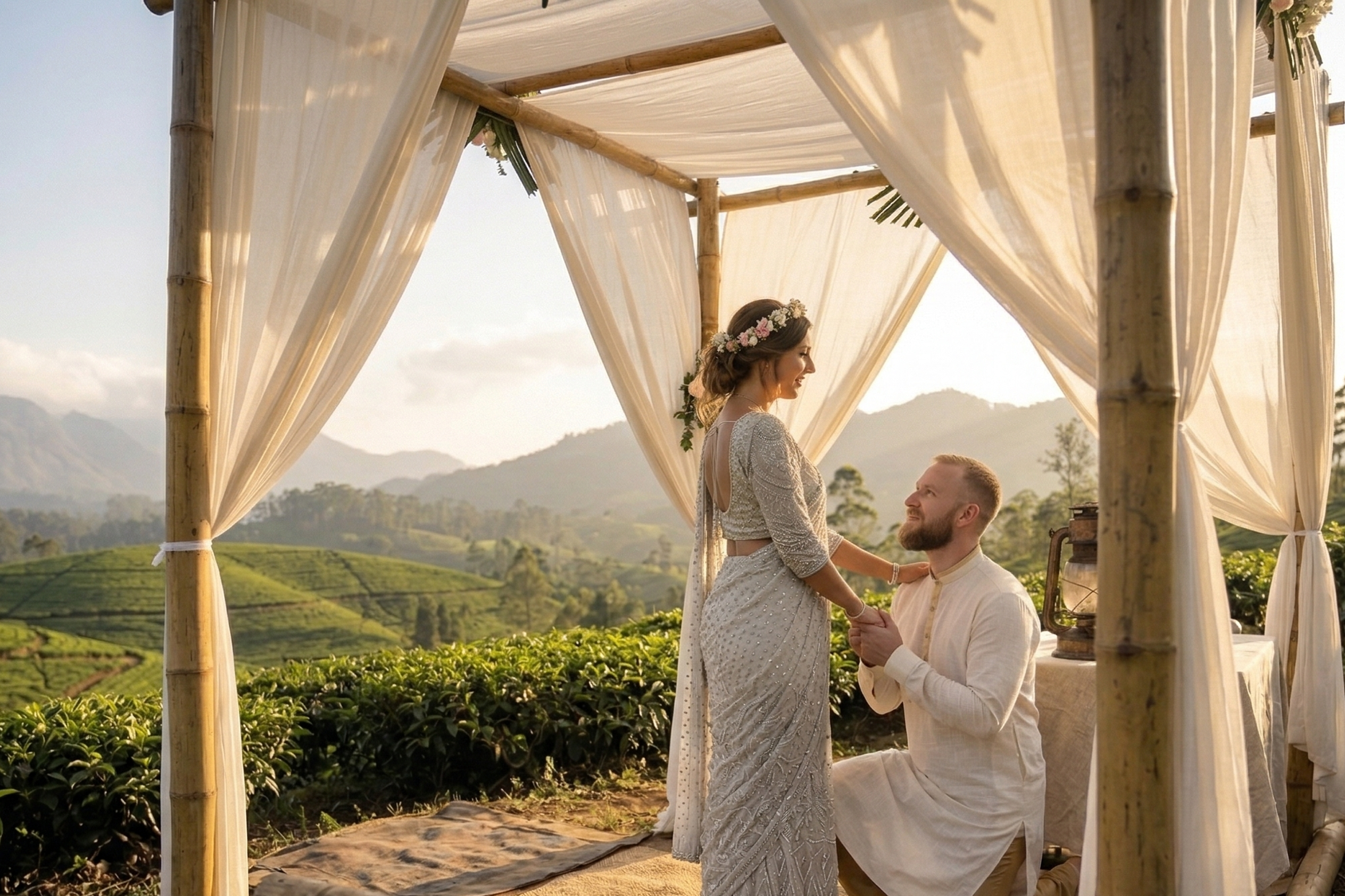 The traditional Kandyan wedding attire (Mul Gedara), elaborate jewelry, and ceremonial elements have been passed down through generations, representing the island’s royal history.
